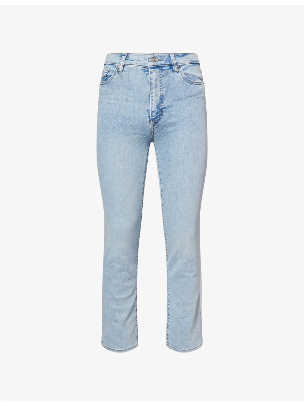 PRODUCT DETAILS - FRAME stretch-denim blend jeans - 70% cotton, 17% polyester, 11% lyocell, 2% elastane - Exposed button and concealed zip-fly fastening at front - Regular fit, high-rise, straight-leg, belt loops, five pockets, faded wash - Machine wash cold - True to size - Size 26: rise 10in / 27cm, inside leg 27in / 69cm, leg opening 14in / 36cm - Model is 5ft 10in/1.78m and wears a size 26 - Midweight, slight stretch Ref: R04550293