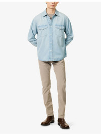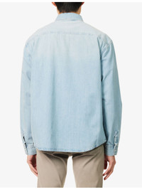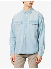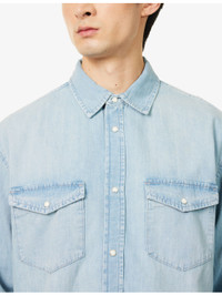 PRODUCT DETAILS - FRAME denim shirt - 100% cotton - Exposed pressed stud fastening at front - Classic collar, long sleeves, two patch pockets at chest, all-over topstitch detailing, all-over was effect - Machine wash cold - Made in Turkey - Size medium: length 30.7in / 78cm, chest 24in / 61cm - Model is 6ft 2in/1.88m and wears a size medium - Lightweight, non-stretch Ref: R04465403