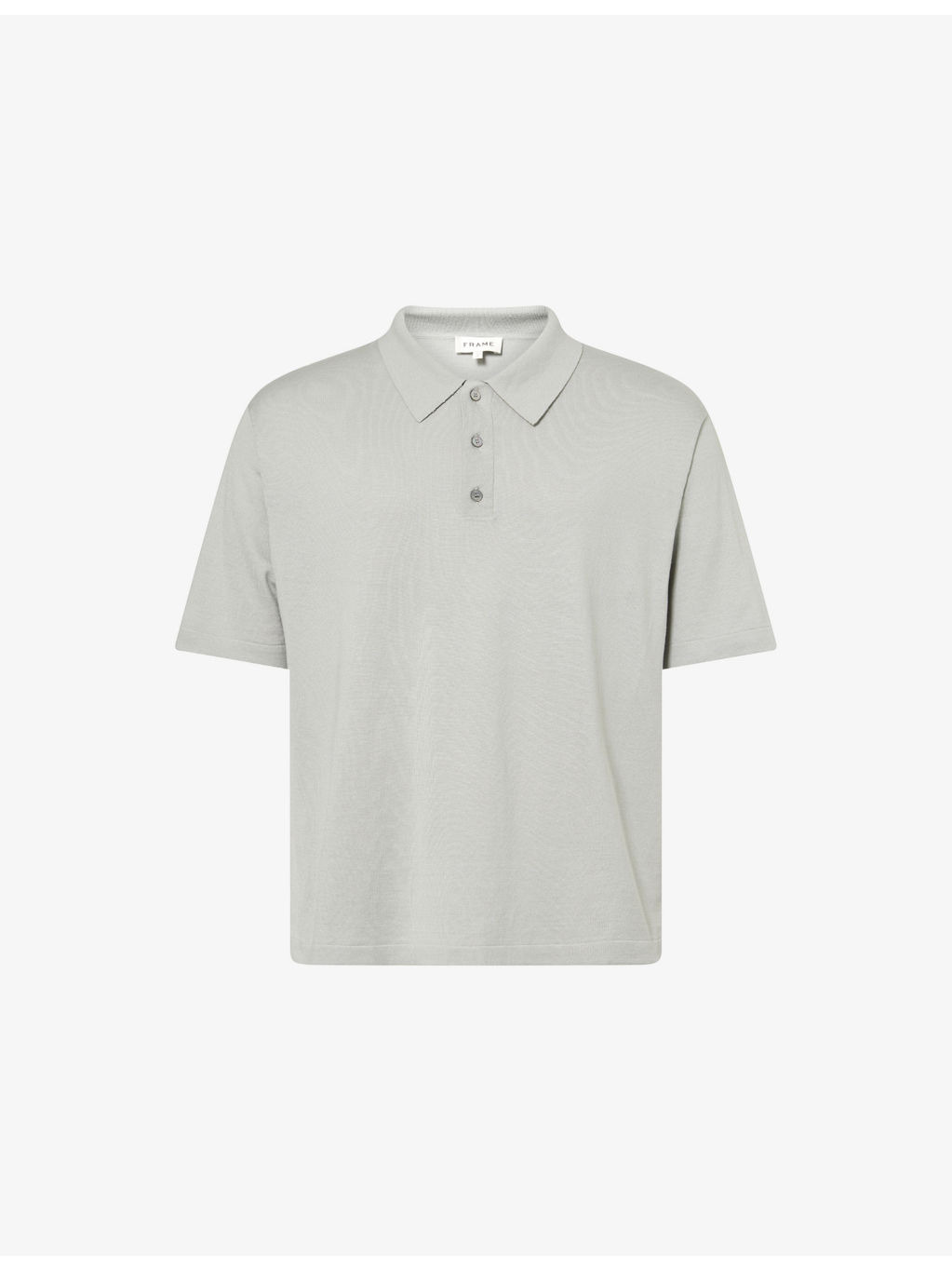 PRODUCT DETAILS - FRAME silk-cotton knit polo shirt - 70% silk, 30% cotton - Exposed button fastening at front - Regular fit, polo collar, short sleeves - Dry clean - Model is 6ft 2in/1.88m and wears a size medium - Lightweight, slight stretch Ref: R04465421