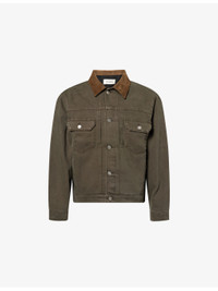 PRODUCT DETAILS - FRAME cotton-canvas jacket - 100% cotton; contrast 100% suede; lining 51% viscose, 49% cotton - Exposed button fastenings at front - Regular fit, suede pointed collar, long sleeves, buttoned cuffs, branded silver-toned buttons, two chest flap pockets, two side slip pockets, adjustable tabs at back, fully lined - Specialist leather clean - Made in Turkey - Size medium: length 24in / 61cm, chest 42in / 107cm - Model is 6ft 2in/1.88m and wears a size medium - Midweight, non-stretch Ref: R04538870