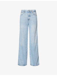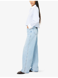 PRODUCT DETAILS - FRAME denim jeans - 100% cotton - Button and zip-fly fastening - Relaxed fit, mid-rise, wide leg, structured waistband with belt loops, five pockets, contrast stitching, faded wash, branded hardware, cuffed hems - Machine wash at 30°C - Made in USA - True to size - Size 26: rise 12in / 31cm, inside leg 31in / 79cm, leg opening 22in / 56cm - Model is 5ft 10in/1.78m and wears a size 26 - Midweight, non-stretch Ref: R04509243
