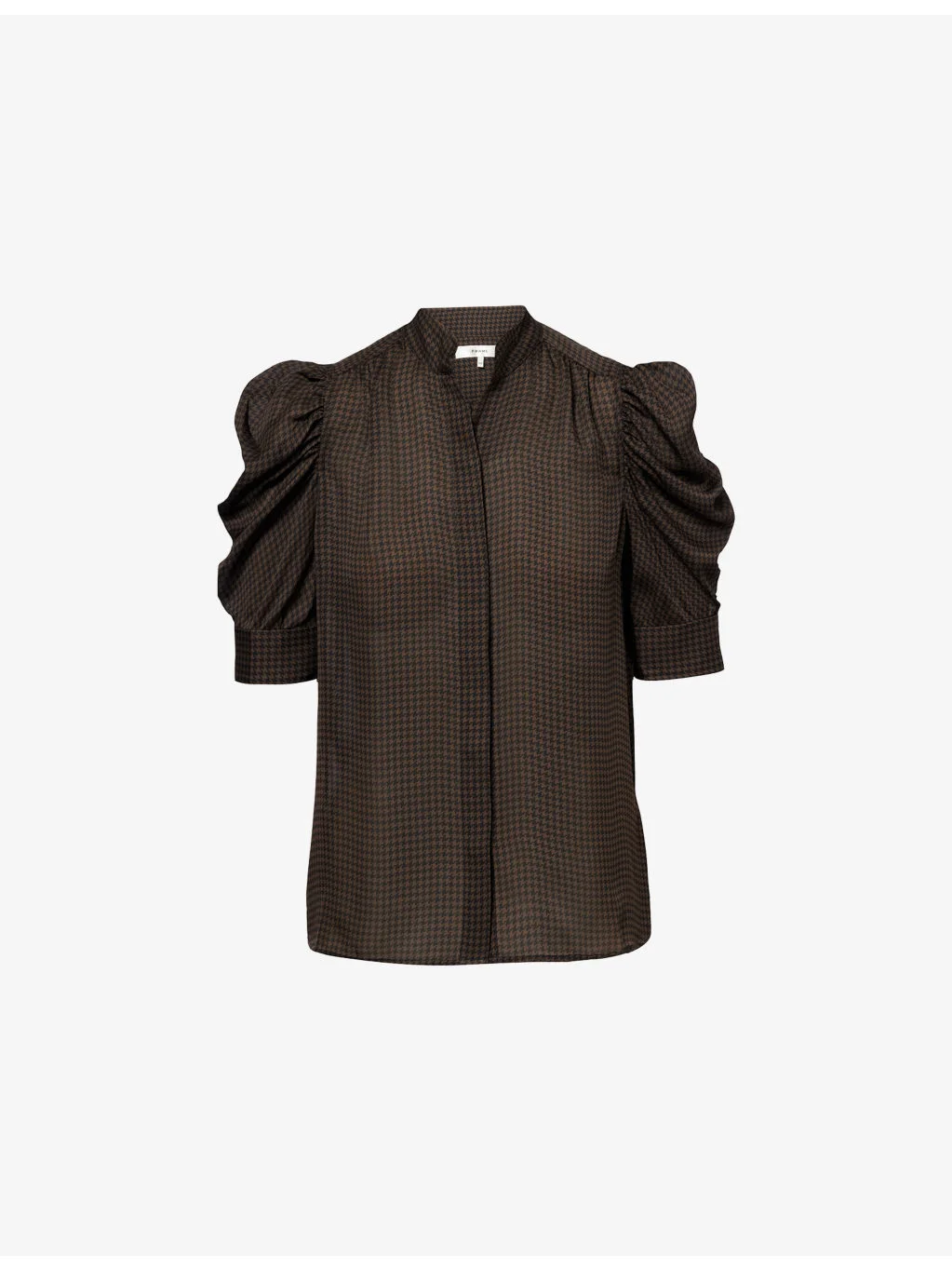 The Houndstooth Gillian Puffed-Short-Sleeves Silk Top