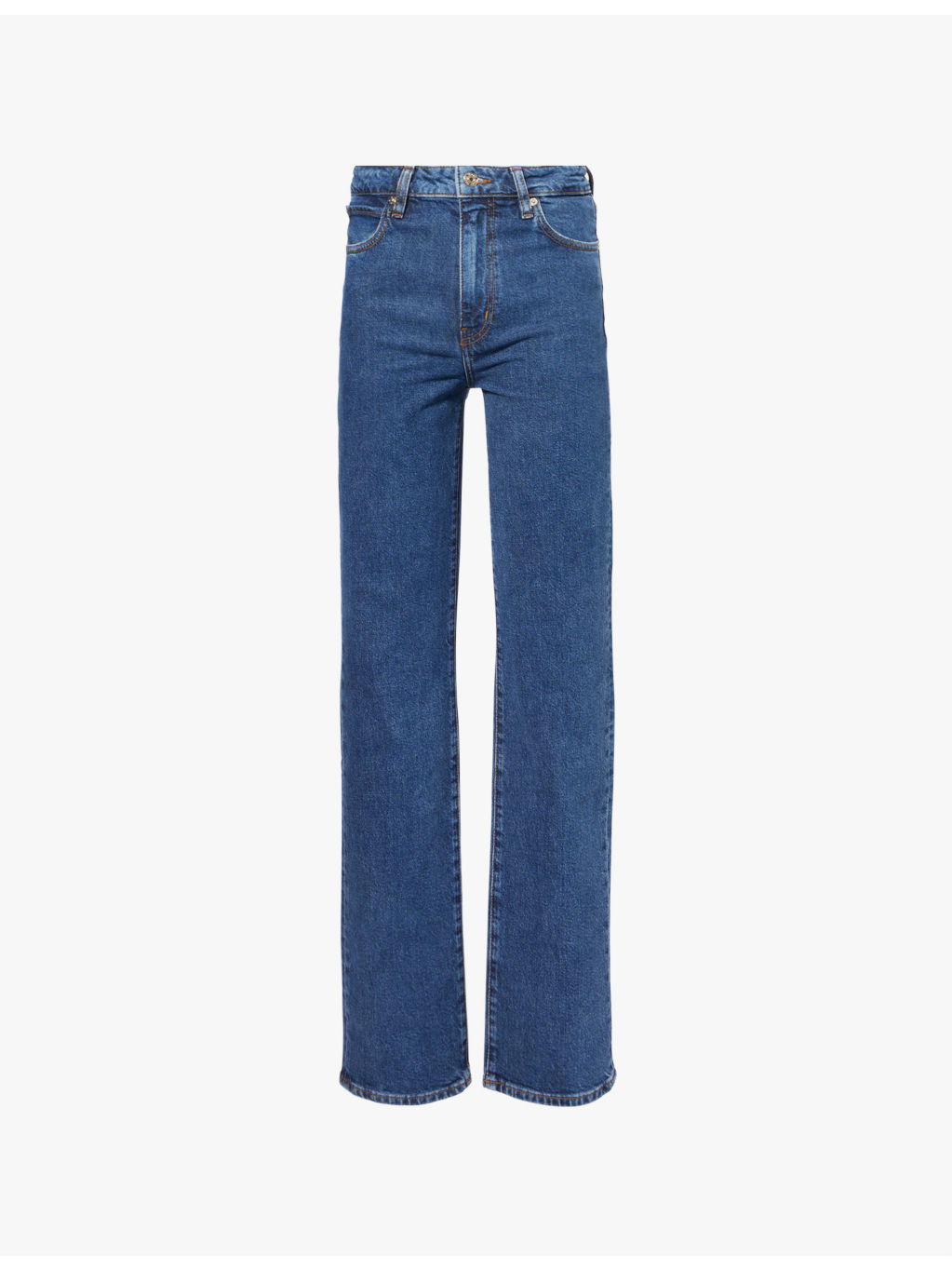 PRODUCT DETAILS - FRAME stretch-denim jeans - 99% cotton, 1% elastane - Button and zip-fly fastening - Regular fit, high rise, straight leg, structured waistband, belt loops, classic five pockets, branded hardware, faded wash and whiskering, V-shaped yoke at back - Machine wash at 30°C - True to size - Size 26: rise 11in / 28cm, inside leg 32in / 81cm, leg opening 15in / 38cm - Model is 5ft 10in/1.78m and wears a size 26 - Midweight, slight stretch Ref: R04387411