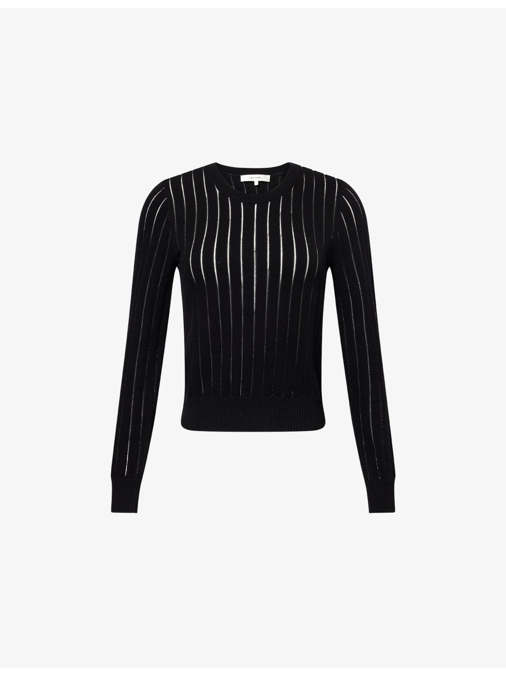 PRODUCT DETAILS - FRAME cotton-blend jumper - 98% cotton, 2% other fibers - Regular fit, round neck, long sleeves, all-over sheer stripe pattern, ribbed trims, knitted - Dry clean only - True to size - Model is 5ft 10in/1.78m and wears a size small - Lightweight, stretchy Ref: R04509236