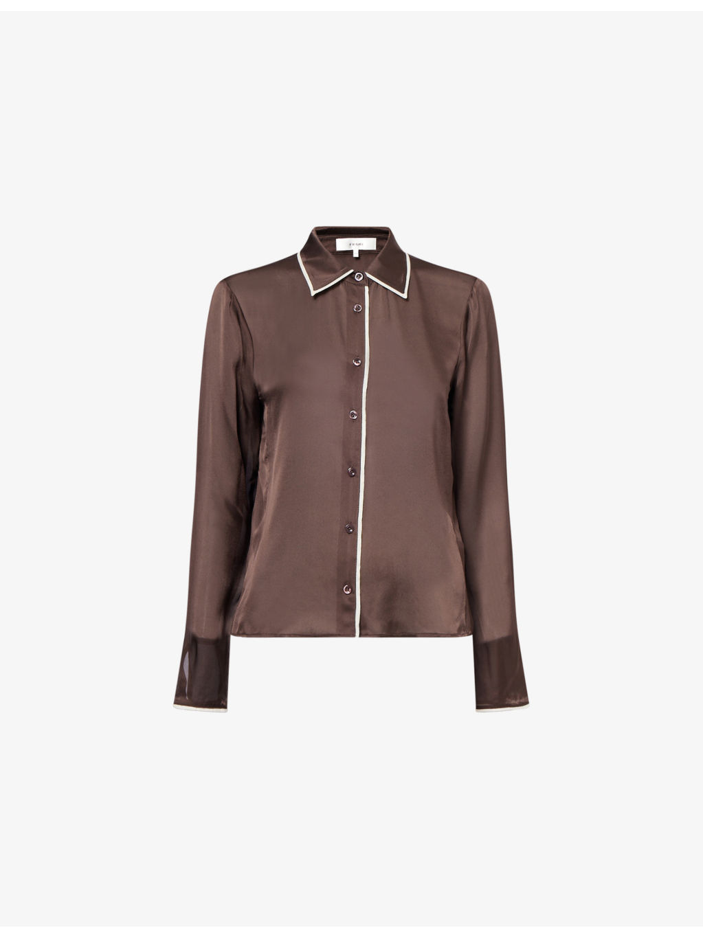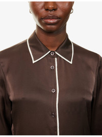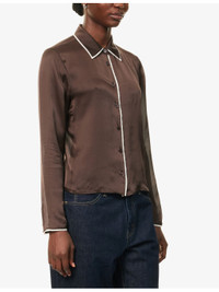 PRODUCT DETAILS - FRAME silk shirt - 100% silk - Button fastening at front - Slim fit, collar, long sleeves, semi-sheer, contrast trims - Machine wash cold - True to size - Size small: length 21in / 53cm - Model is 5ft 10in/1.78m and wears a size small - Lightweight, non-stretch Ref: R04509262