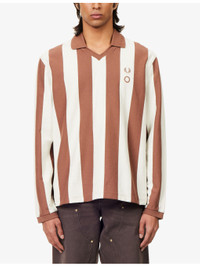 PRODUCT DETAILS - Fred Perry x Craig Green cotton-jersey polo shirt - 100% cotton; trims 97% cotton, 3% elastane - Polo collar - Elasticated cuffs - Regular fit, collar, V-neck, long sleeves, brand embroidery at front, all-over striped print, ribbed trims - Machine wash at 40°C - Model is 6ft 2in/1.88m and wears a size medium - Midweight, stretchy Ref: R04534328