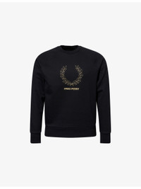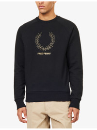 PRODUCT DETAILS - Fred Perry woven sweatshirt - 66% polyester, 34% cotton; trims 98% cotton, 2% elastane - Regular fit, crewneck, raglan long sleeve, brand embroidery at front, brushed interior, ribbed trims - Machine wash at 40°C - Model is 6ft 2in/1.88m and wears a size medium - Midweight, stretchy Ref: R04534292