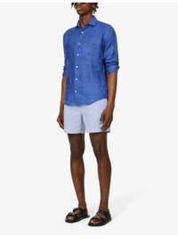 PRODUCT DETAILS - Frescobol Carioca linen shirt - 100% linen - Exposed button fastenings at front - Regular fit, cut-away collar, long sleeves, single-buttoned mitered cuffs, curved hem - Machine wash cold - Made in Portugal - Model is 6ft/1.83m and wears a size medium - Lightweight, non-stretch