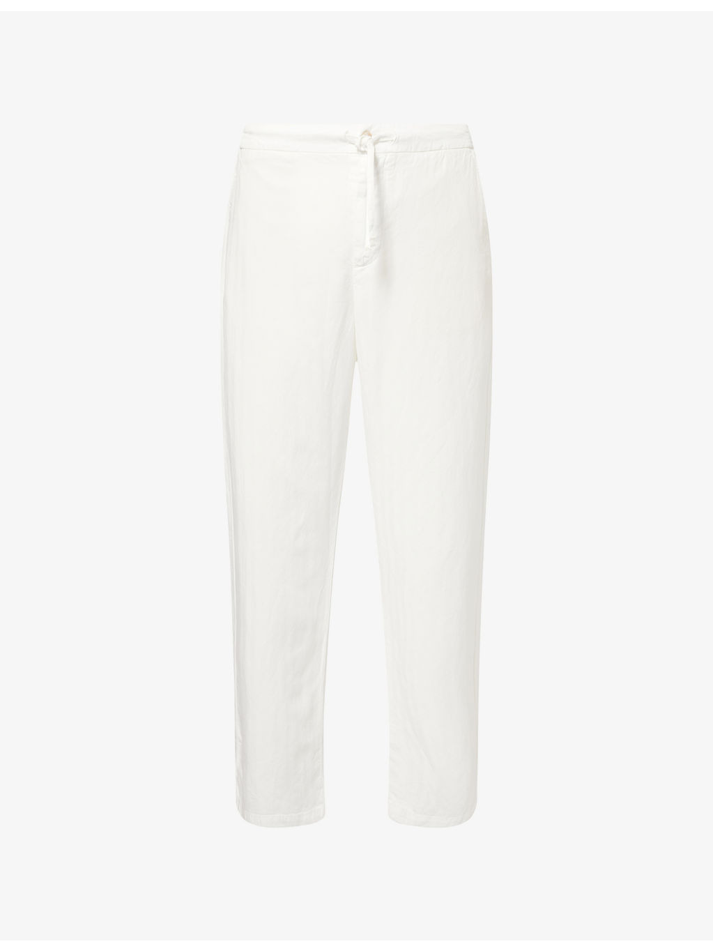 PRODUCT DETAILS - Frescobol Carioca linen-cotton blend trousers - 59% lyocell, 23% linen, 18% cotton - Button and zip-fly fastening at front - Relaxed fit, elasticated drawstring waist, two slip pockets at front, two patch pockets at back - Machine wash at 30°C - Made in Portugal - Model is 6ft 2in/1.88m and wears a size UK 32 - Lightweight, non-stretch Ref: R04459558