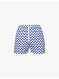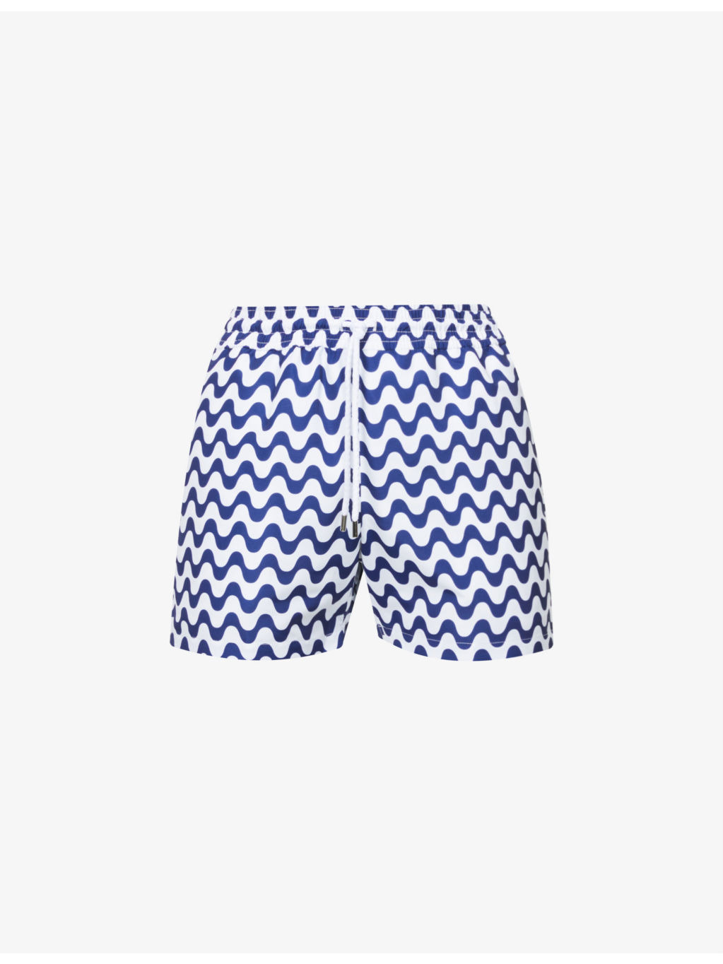 PRODUCT DETAILS - Frescobol Carioca swim shorts - 100% polyester; lining 100% cotton - Pulls on - Regular fit, mid rise, elasticated drawstring waistband, slip pockets at sides, one buttoned-jetted pocket at back, all-over wave print, fully mesh-lined - Hand wash cold - Made in Portugal - Model is 6ft/1.83m and wears a size medium - Midweight, non-stretch - Comes with a dust bag