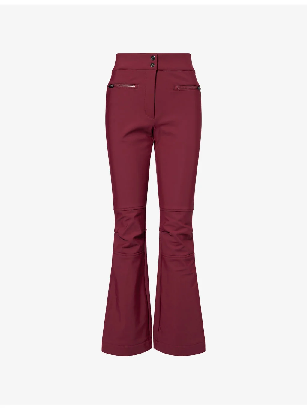 PRODUCT DETAILS - Fusalp ski trousers - 58% polyester, 30% polyamide, 12% elastane - Button, hook-and-eye and zip-fly fastening - Regular fit, mid-rise, structured waistband, fleece-laminated stretch softshell with FUSALP-approved membrane, middle front fly opening with snap fastener, pre-shaped knees, zip pockets at front, snow gaiters with non-slip elastic band, logo detailing - Machine wash cold - True to size - Model is 5ft 10in/1.78m and wears a size UK 8 - Midweight, slight stretch Ref: R04529046
