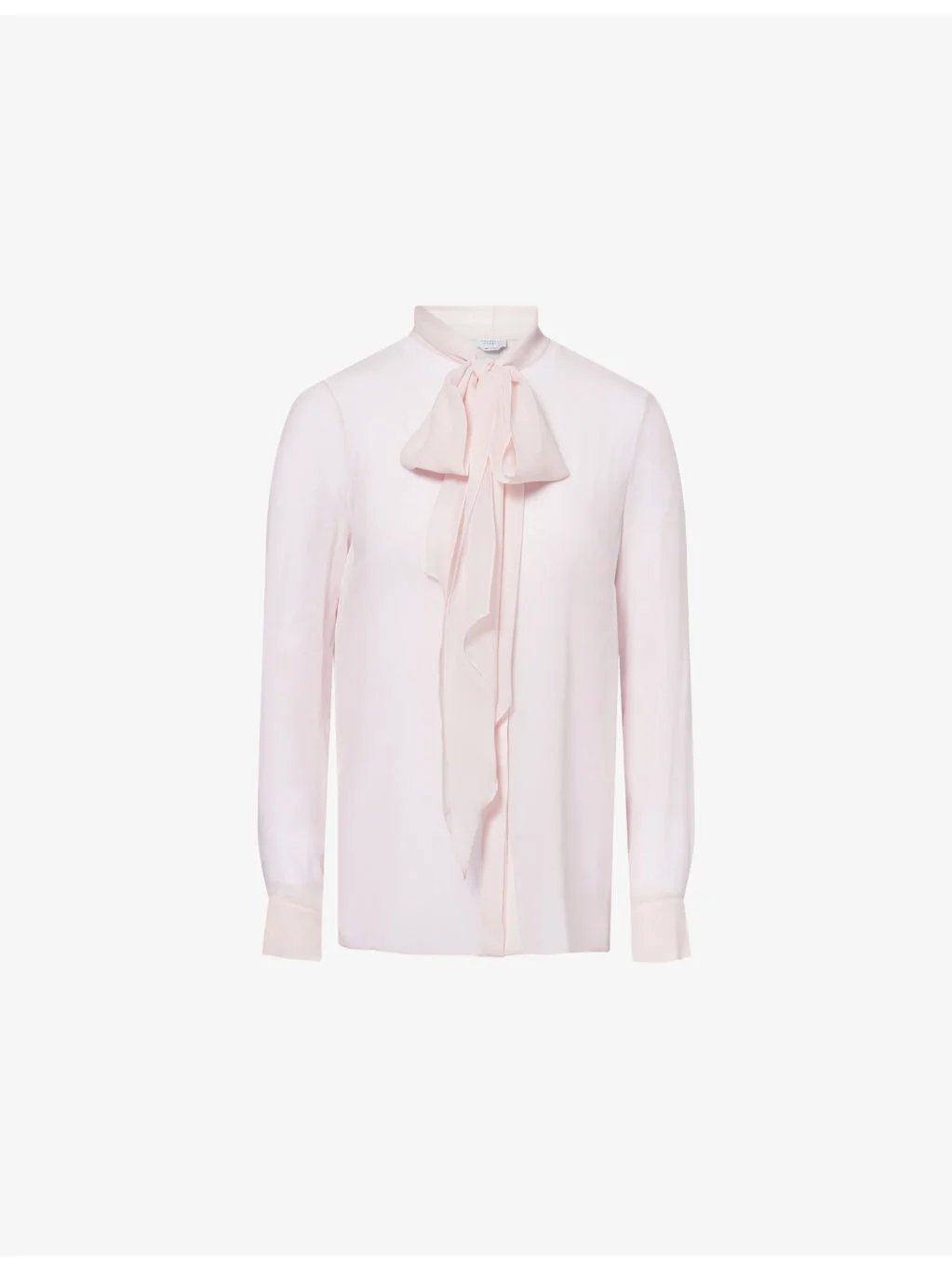 PRODUCT DETAILS - Gabriela Hearst silk blouse - 100% silk - Concealed button fastening at front - Regular fit, bow collar, long sleeves, buttoned cuffs, semi sheer - Dry clean - Made in Italy - True to size - Size UK 8: length 28in / 71cm - Model is 5ft 10in/1.78m and wears a size UK 8 - Lightweight, non-stretch Ref: R04548413
