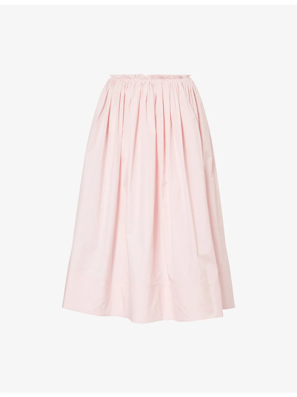 PRODUCT DETAILS - Gabriella Hearst cotton midi skirt - 100% cotton - Concealed zip fastening at side - Regular fit, high waist, gathered waistband, slip pockets at sides, midi length, unlined - Dry clean - Made in Italy - True to size - Size UK 8: length 33in / 84cm - Model is 5ft 10in/1.78m and wears a size UK 8 - Lightweight, non-stretch Ref: R04581608