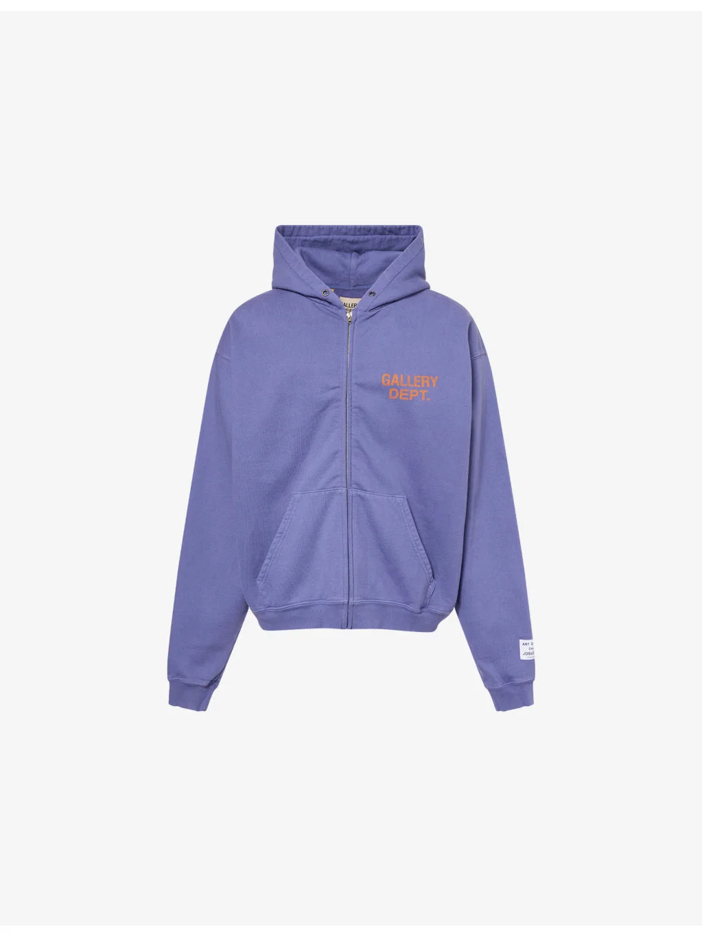 PRODUCT DETAILS - GALLERY DEPT. cotton-jersey hoody - 100% cotton - Concealed zip fastening at front - Relaxed fit, hood, long sleeves, brand patch at sleeve, brand print and kangaroo pocket at front, ribbed trims - Dry clean only - Made in USA - Midweight, stretchy Ref: R04488751