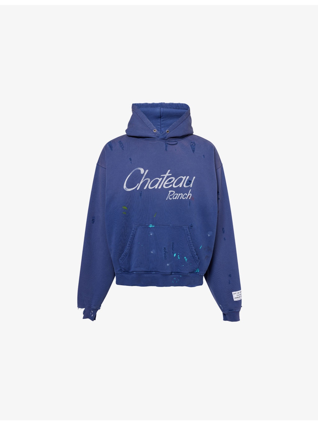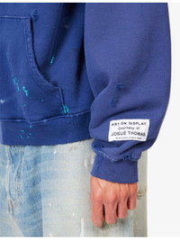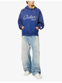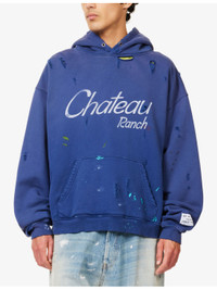 Chateau Ranch Distressed Paint-Splattered Logo-Print Supima Cotton-Jersey Hoodie Blue