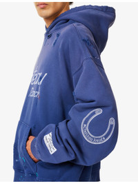 PRODUCT DETAILS - GALLERY DEPT. cotton-jersey hoodie - 100% cotton - Relaxed fit, hood, long sleeves, brand patch at sleeve, slogan print at front, kangaroo pocket at front, all-over distressed finish - Dry clean only - Made in USA - Model is 6ft 2in/1.88m and wears a size medium - Midweight, slight stretch Ref: R04480620