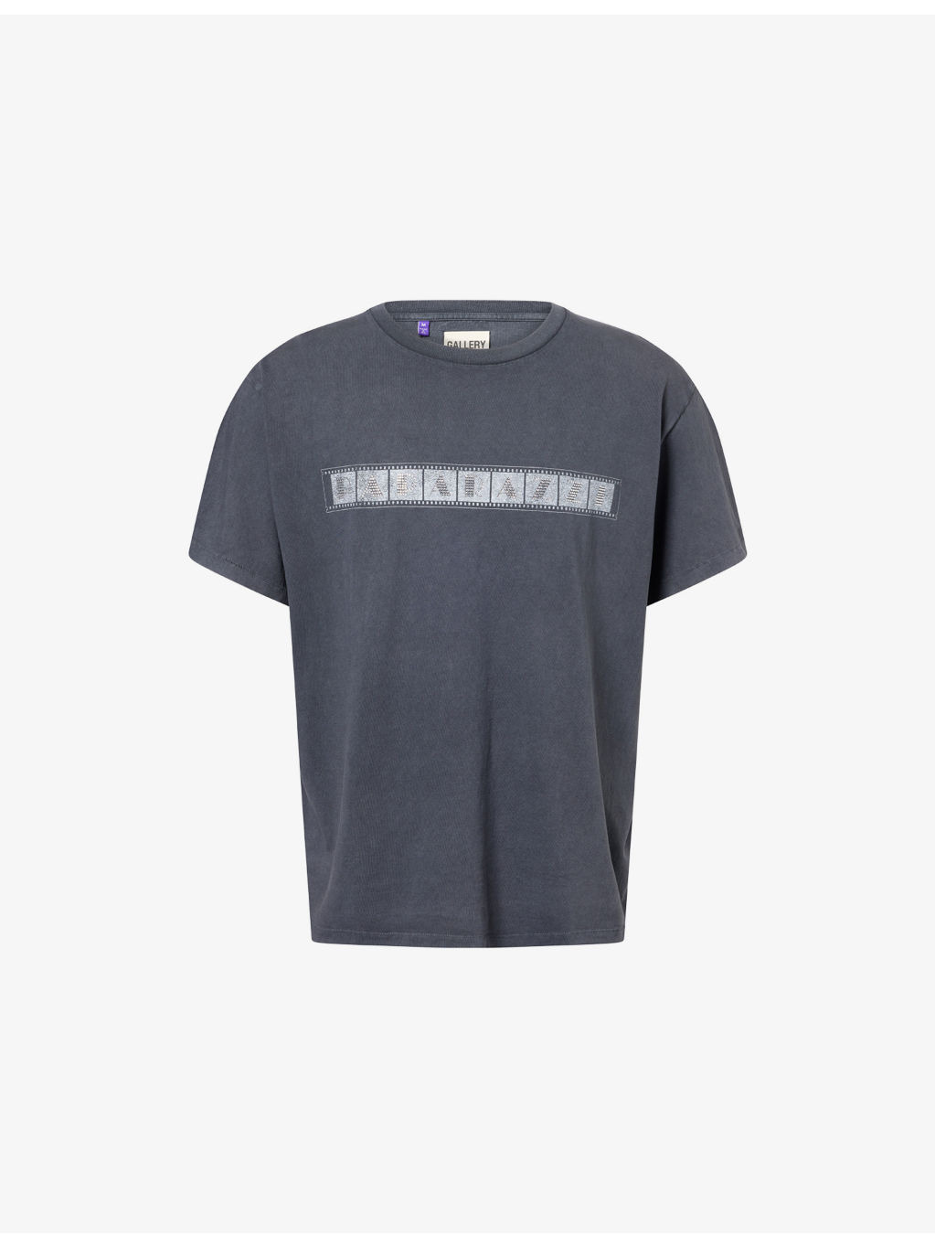 PRODUCT DETAILS - GALLERY DEPT. cotton-jersey T-shirt - 100% cotton - Relaxed fit, ribbed crewneck, short sleeves, rhinestone text at front, glitter branding at back - Dry clean only - Made in USA - Model is 6ft 2in/1.88m and wears a size medium - Lightweight, stretchy Ref: R04488988