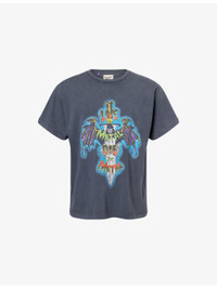 PRODUCT DETAILS - GALLERY DEPT. cotton-jersey T-shirt - 100% cotton - Relaxed fit, ribbed crewneck, short sleeves, text and graphic print at front, text print and glitter branding at back - Dry clean only - Made in USA - Model is 6ft 2in/1.88m and wears a size medium - Lightweight, stretchy Ref: R04488983