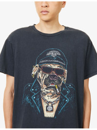 Biker Dog Glittered Printed Cotton-Jersey T-Shirt Black