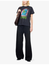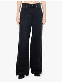 PRODUCT DETAILS - GANNI denim-blend jeans - 60% cotton, 40% lyocell - Exposed button and concealed zip-fly fastening at front - Baggy fit, high-rise, wide leg, belt loops, five pockets, brand patch at back, faded wash and whiskering - Machine wash at 30°C - Made in Italy - True to size - Size 26: rise 14in / 37cm, inside leg 30in / 77cm, leg opening 24in / 61cm - Model is 5ft 10in/1.78m and wears a size 26 - Midweight, stretchy Ref: R04522543