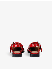 PRODUCT DETAILS - Ganni patent slingback pumps - 56% polyurethane, 44% recycled cotton - Buckle fastening - Pointed toe, open back, eyelet buckles at front straps, silver-toned hardware. slingback strap, block heel - Upper: 56% polyurethane, 44% recycled cotton - Lining: 76% polyurethane, 24% viscose - Made in Portugal Ref: R04345681