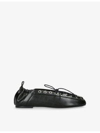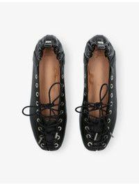 PRODUCT DETAILS - GANNI vegan leather flats - 64% polyurethane, 23% polyester, 13% cotton - Lace-up fastening - Round toe, lace-up design, eyelet detail, flat heel - Wipe with a clean, dry cloth - Upper: 64% polyurethane, 23% polyester, 13% cotton - Lining: 64% polyurethane, 23% polyester, 13% cotton - Sole: 100% rubber Ref: R04445392