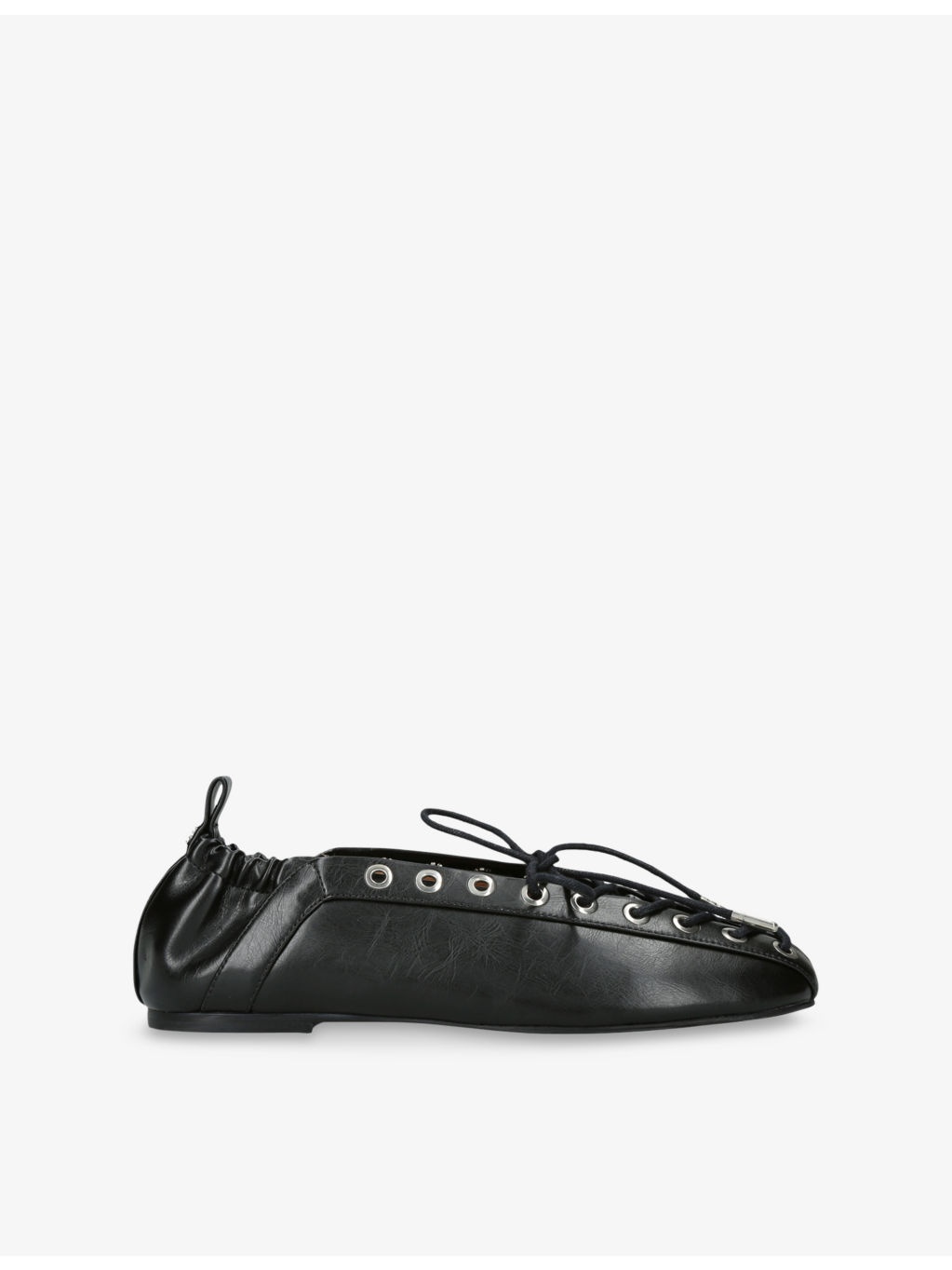 Eyelets Lace-Up Vegan Leather Ballerina Flats