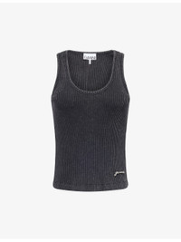 PRODUCT DETAILS - GANNI cotton-jersey tank top - 100% cotton - Scoop neck, all-over ribbed texture, brand-plaque at hem - Hand wash - Made in Portugal - True to size - Model is 5ft 10in/1.78m and wears a size small - Lightweight, slight stretch Ref: R04472282