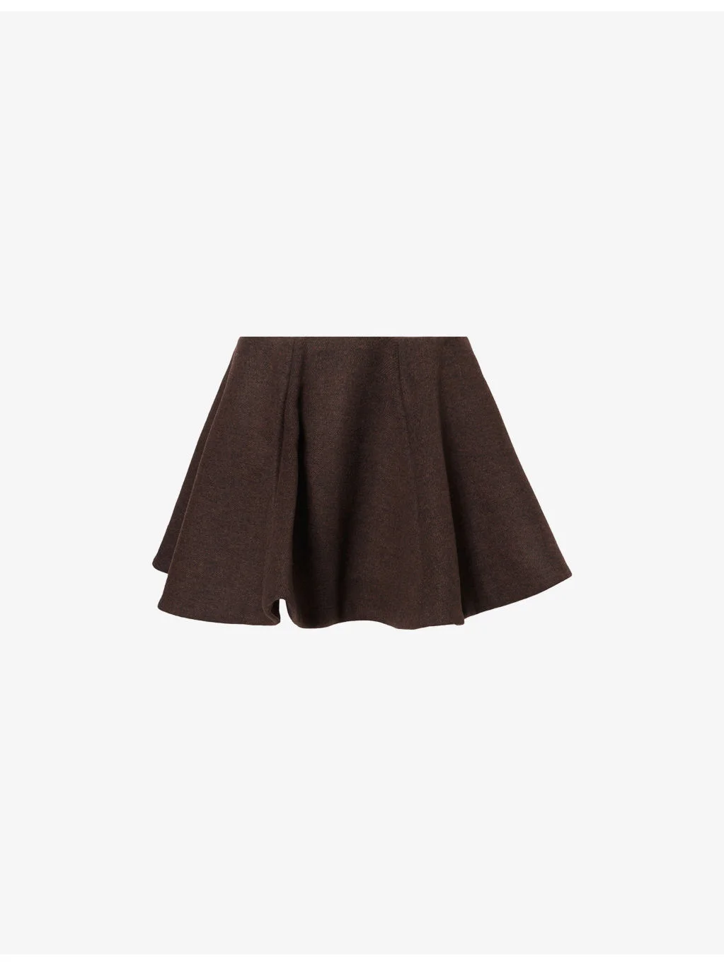 PRODUCT DETAILS - GANNI wool-blend mini skirt - 72% wool, 23% polyester, 5% cashmere; lining 57% acetate, 43% viscose - Concealed zip fastening at side - Regular fit, mid-rise, darts at front and back, knitted, fully lined, flared hem - Dry clean - True to size - Size small: length 14in / 36cm - Model is 5ft 10in/1.78m and wears a size small - Midweight, stretchy Ref: R04574987