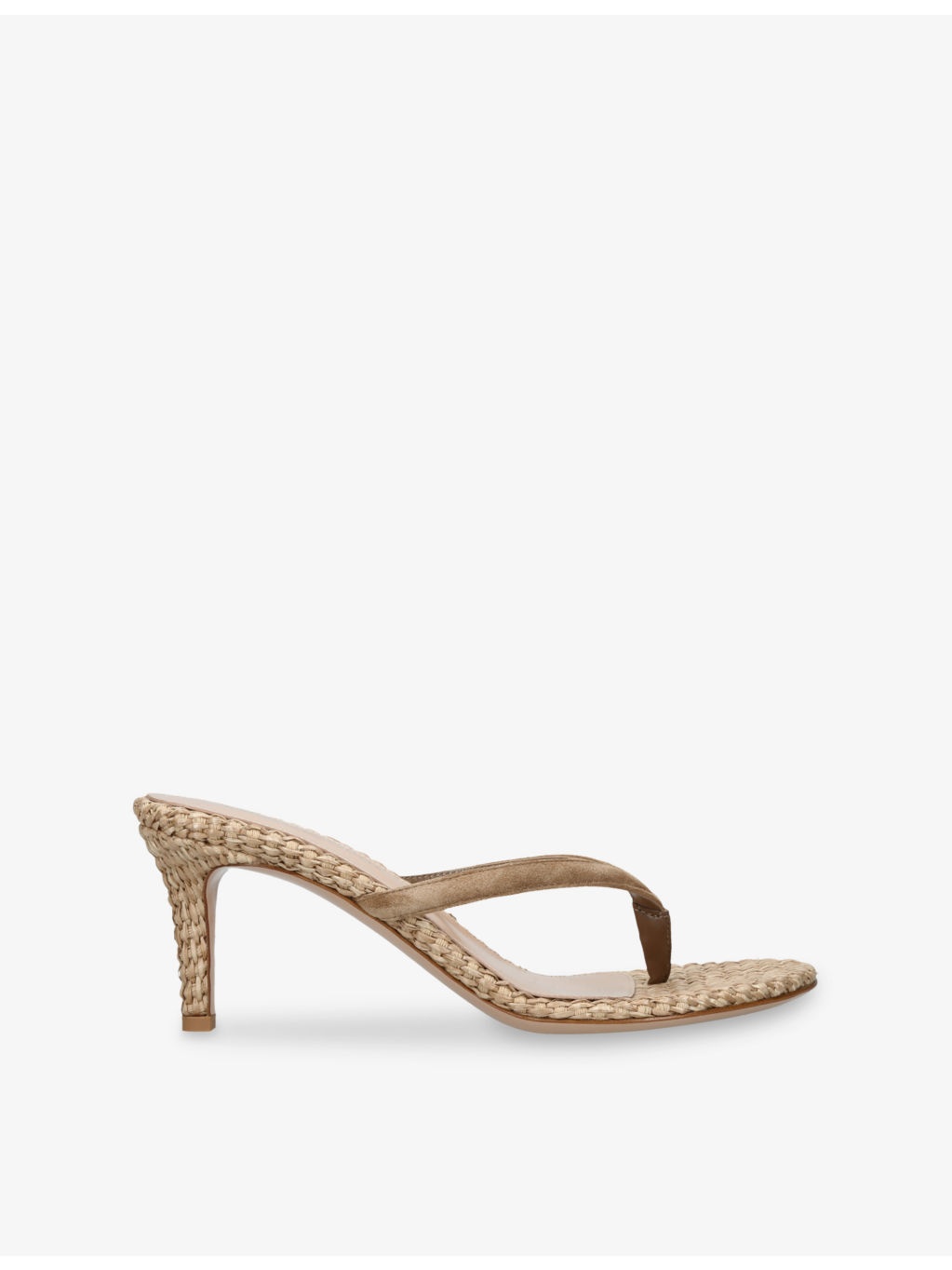 PRODUCT DETAILS - Gianvito Rossi suede and raffia heeled sandals - 100% suede; 100% raffia - Open round toe, toe post, kitten heel - Heel height 1.7"" - Specialist leather clean - Upper: 100% suede - Lining: 100% leather - Sole: 100% synthetic Ref: R04494584