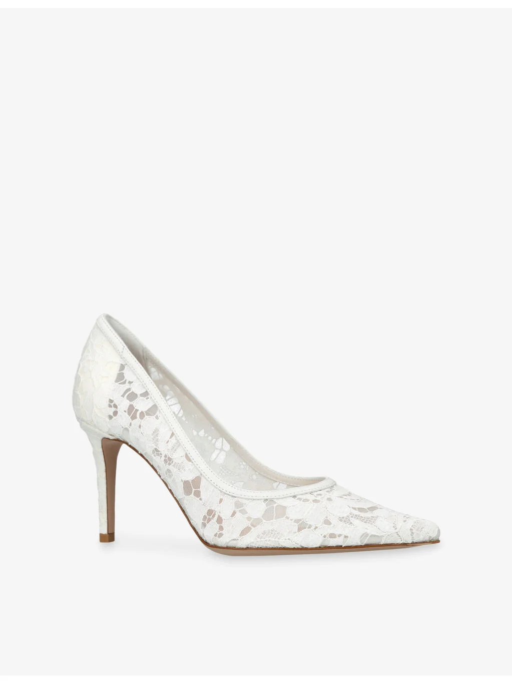 PRODUCT DETAILS - Gianvito Rossi lace courts - 100% fabric; 100% suede - Closed pointed toe, floral lace upper, semi sheer, suede trim, covered stiletto heel - Heel height 3.3” - Wipe with a clean, dry cloth - Upper: 100% fabric; 100% suede - Lining: 100% leather - Sole: 100% leather Ref: R04535563