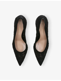 PRODUCT DETAILS - Gianvito Rossi lace courts - 100% fabric; 100% suede - Closed pointed toe, floral lace upper, semi sheer, suede trim, covered stiletto heel - Heel height 3.3” - Wipe with a clean, dry cloth - Made in Italy - Upper: 100% fabric; 100% suede - Lining: 100% leather - Sole: 100% leather Ref: R04535562