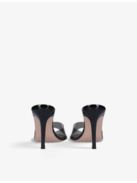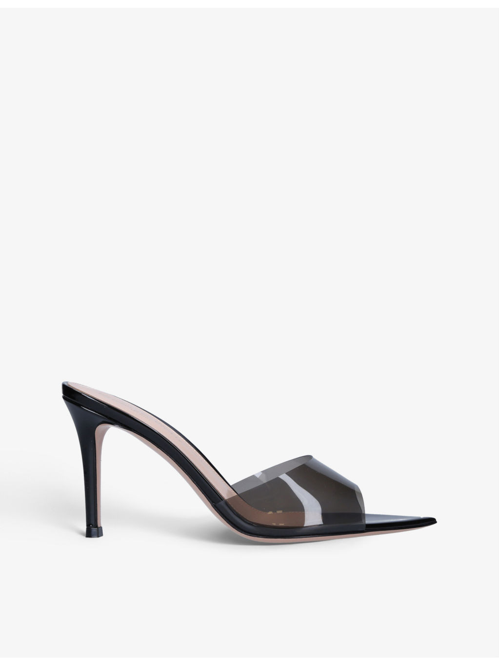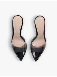 PRODUCT DETAILS - Gianvito Rossi Elle leather and PVC heeled mules - 100% leather, 100% PVC - Slips on - Open pointed toe, PVC front strap, backless silhouette, stiletto heel - Heel height: 85mm - Specialist leather clean - Made in Italy - Upper: 100% synthetic - Lining: 100% leather - Sole: 100% leather Ref: R04071935