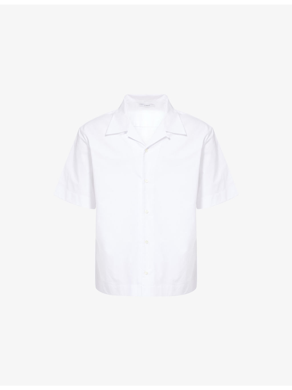 PRODUCT DETAILS - Givenchy cotton shirt - 100% cotton - Exposed button fastening at front - Regular fit, camp collar, short sleeves, embroidered logo at back - Machine wash at 30°C - Made in Portugal - Collar size 16: length 29.5in / 75.5cm, chest 51in / 130cm - Model is 6ft 2in / 1.88m and wears a collar size 16 - Midweight, non-stretch Ref: R04480879