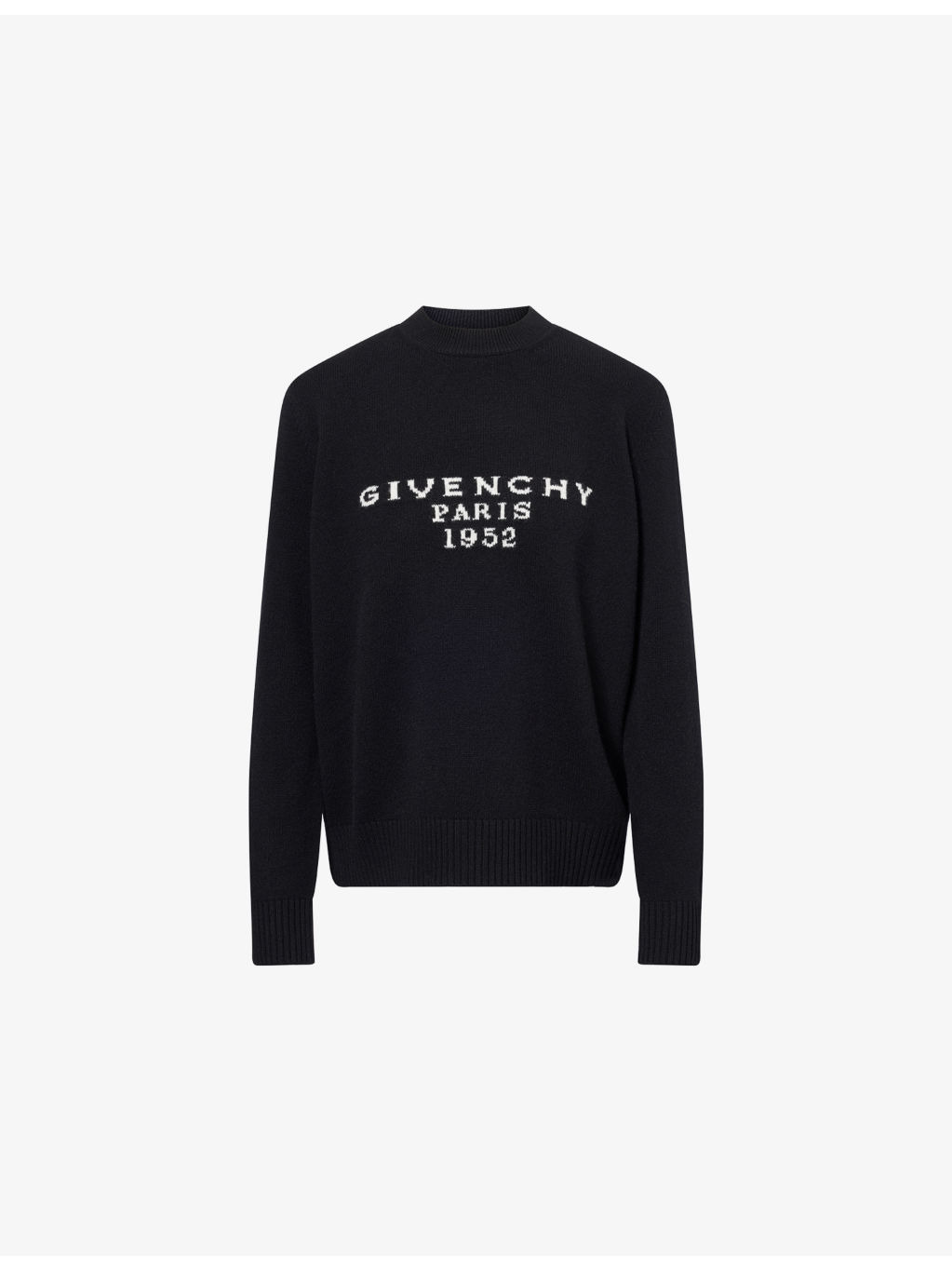 PRODUCT DETAILS - Givenchy wool and cashmere jumper - 70% wool, 30% cashmere - Relaxed fit, round-neck, long sleeves, brand intarsia at front, all-over knitted, ribbed trims - Dry clean - Made in Italy - True to size - Model is 5ft 10in/1.78m and wears a size small - Midweight, stretchy Ref: R04512000