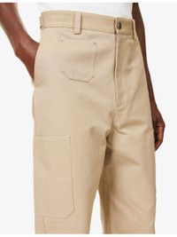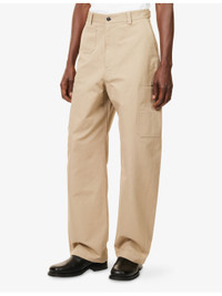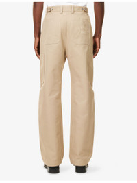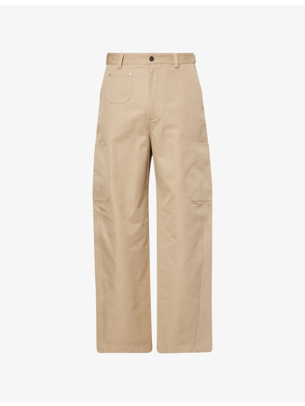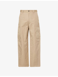 PRODUCT DETAILS - Givenchy cotton trousers - 100% cotton - Exposed button and concealed zip-fly fastening at front - Relaxed fit, high-rise, wide leg, belt loops, two slip pockets and patch pocket at front, two patch pockets at back and buttoned epaulettes at back, brand print at back, patch pocket at sides, all-over canvas texture - Machine wash at 30°C - Made in Italy - Size UK 32: rise 15in / 39cm, inside leg 30in / 77cm, leg opening 18in / 46cm - Model is 6ft 2in/1.88m and wears a size UK 32 - Lightweight, non-stretch Ref: R04480846
