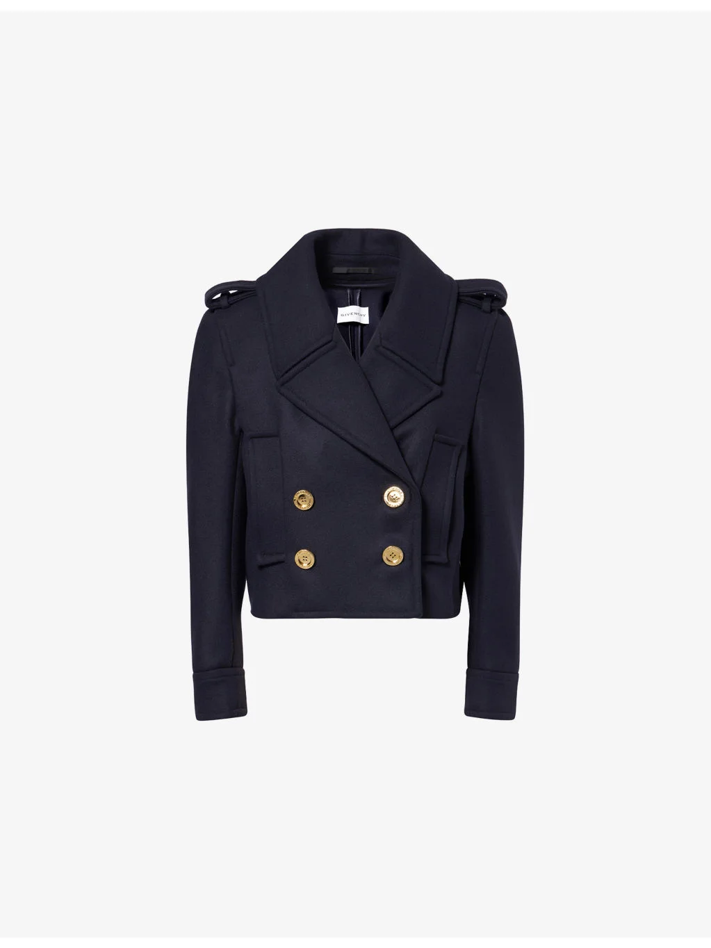 PRODUCT DETAILS - Givenchy wool peacoat - 100% wool - Button fastening - Regular fit, cropped length, notched lapels, buttoned eppaulettes at shoulders, long sleeves, gold-tone branded hardware, two welt pockets at front, fully lined - Dry clean - Made in Italy - True to size - Size UK 8: length 21in / 53.4cm - Model is 5ft 10in/1.78m and wears a size UK 8 - Midweight, non-stretch Ref: R04557393