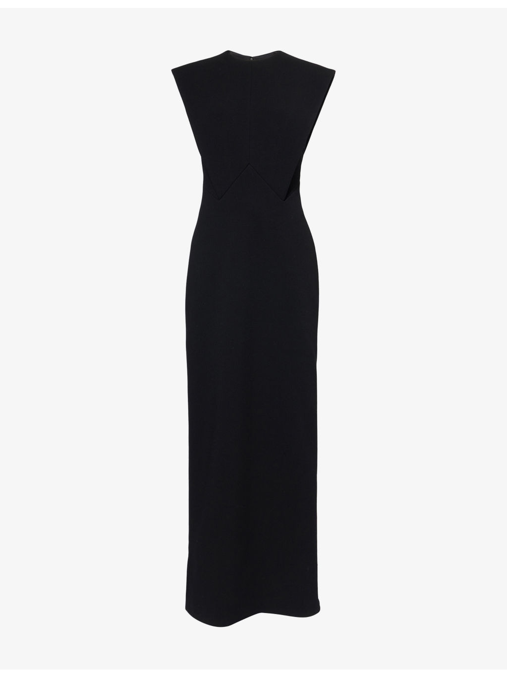 PRODUCT DETAILS - Givenchy stretch-wool blend maxi dress - 90% wool, 7% polyamide, 3% elastane; lining 100% polyester - Concealed zip fastening at back - Regular fit, round-neck, structured shoulders, sleeveless, panel at front and back, split at back, fully lined - Dry clean - Made in Italy - True to size - Size UK 10: length 62in / 157cm - Model is 5ft 10in / 1.78m and wears a size UK 10 - Heavyweight, stretchy Ref: R04512002