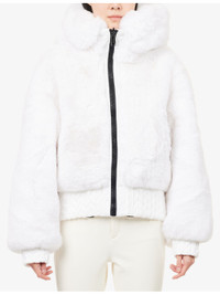 PRODUCT DETAILS - Goldbergh faux-fur ski jacket - 100% polyester; filling 100% polyester; lining 100% polyester - Exposed zip fastening at front - Relaxed fit, high-neck, detachable hood, long sleeves, elasticated trims, two zip pockets at front, all-over faux-fur texture, all-over padded, fully lined, waterproof, breathable - Machine wash at 30°C - True to size - Size UK 8: length 23in / 59cm - Model is 5ft 10in/1.78m and wears a size UK 8 - Heavyweight, non-stretch Ref: R04492758