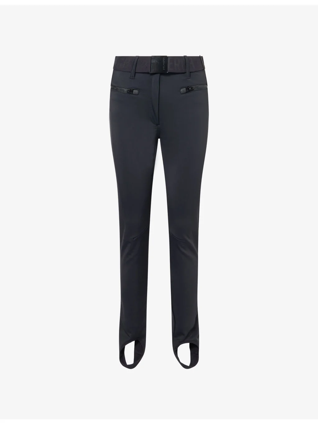 PRODUCT DETAILS - Goldbergh softshell ski trousers - 74% polyamide, 26% elastane - Concealed button, hook-and-eye and zip-fly fastening - Slim fit, elatsticated waistband, branded elasticated belt, slim leg, belt loops, two front zip pockets, stirrup at hem - Machine wash at 40°C - True to size - Size UK 8: rise 10in / 25cm, inside leg 31in / 79.5cm - Model is 5ft 10in/1.78m and wears a size UK 8 - Midweight, stretchy Ref: R04492716