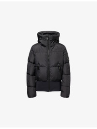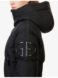PRODUCT DETAILS - Goldbergh shell-down ski jacket - 100% polyester; contrast 74% polyamide, 26% elastane; filling 90% down, 10% feathers; lining 100% polyester - Exposed zip fastening at front - Relaxed fit, high neck, hood, long sleeves, ski pass pocket, knitted cuffs and hem, logo embroidered at sleeve, branded hardware, two side diagonal zip pockets, two interior zip pockets,quilted design, anti-odor finish - Machine wash at 30°C - True to size - Size UK 8: length 24in / 60cm - Model is 5ft 10in/1.78m and wears a size UK 8 - Midweight, non-stretch Ref: R04492715
