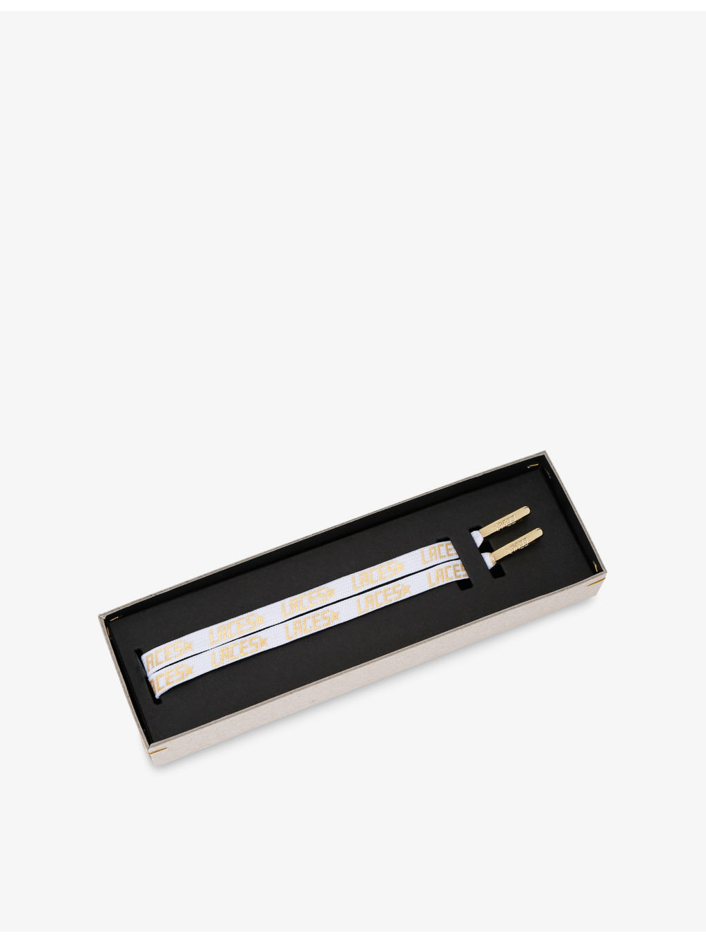 PRODUCT DETAILS - Golden Goose woven laces - 100% polyester - Self-tie fastening - Personalise your trainers, repeat laces print with star logo, gold-tone metal - Wipe with a clean, dry cloth - Presented in a branded box Ref: R04272823