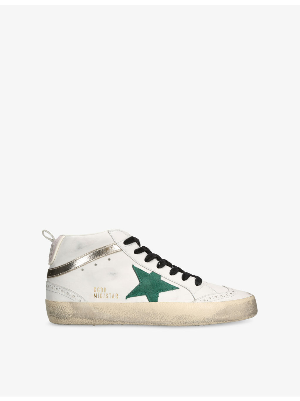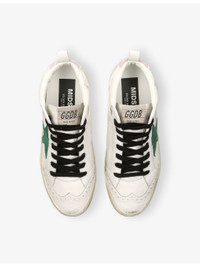 PRODUCT DETAILS - Golden Goose bio-based mid-top trainers - 45% textile polyurethane, 28% cotton, 15% sheepskin leather, 10% cow leather, 2% cellulose - Lace-up fastening - Mid top, round closed toe, star embroidered at side, branded patch at tongue, metallic trim at side, contrasting laces, broguing trims, contrasting heel tab - Wipe with a clean, dry cloth - Made in Italy - Upper: 45% textile polyurethane, 28% cotton, 15% sheepskin leather, 10% cow leather, 2% cellulose - Lining: 55% cotton, 31% textile polyurethane, 9% viscose, 5% polyester - Sole: 100% rubber Ref: R04386968
