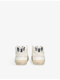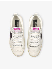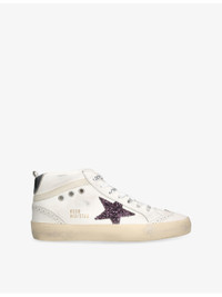 PRODUCT DETAILS - Golden Goose leather low-top trainers - 100% leather - Lace-up fastening - Mid top, round closed toe, metallic panel at back, glitter star motif at sides, logo print at sides, branded laces, broguing trims, panelled design - Specialist leather clean - Made in Italy - Upper: 94% cow leather, 6% sheepskin leather - Lining: 55% cotton, 23% cow leather, 14% textile polyurethane, 5% polyester, 3% viscose - Sole: 100% rubber Ref: R04397590