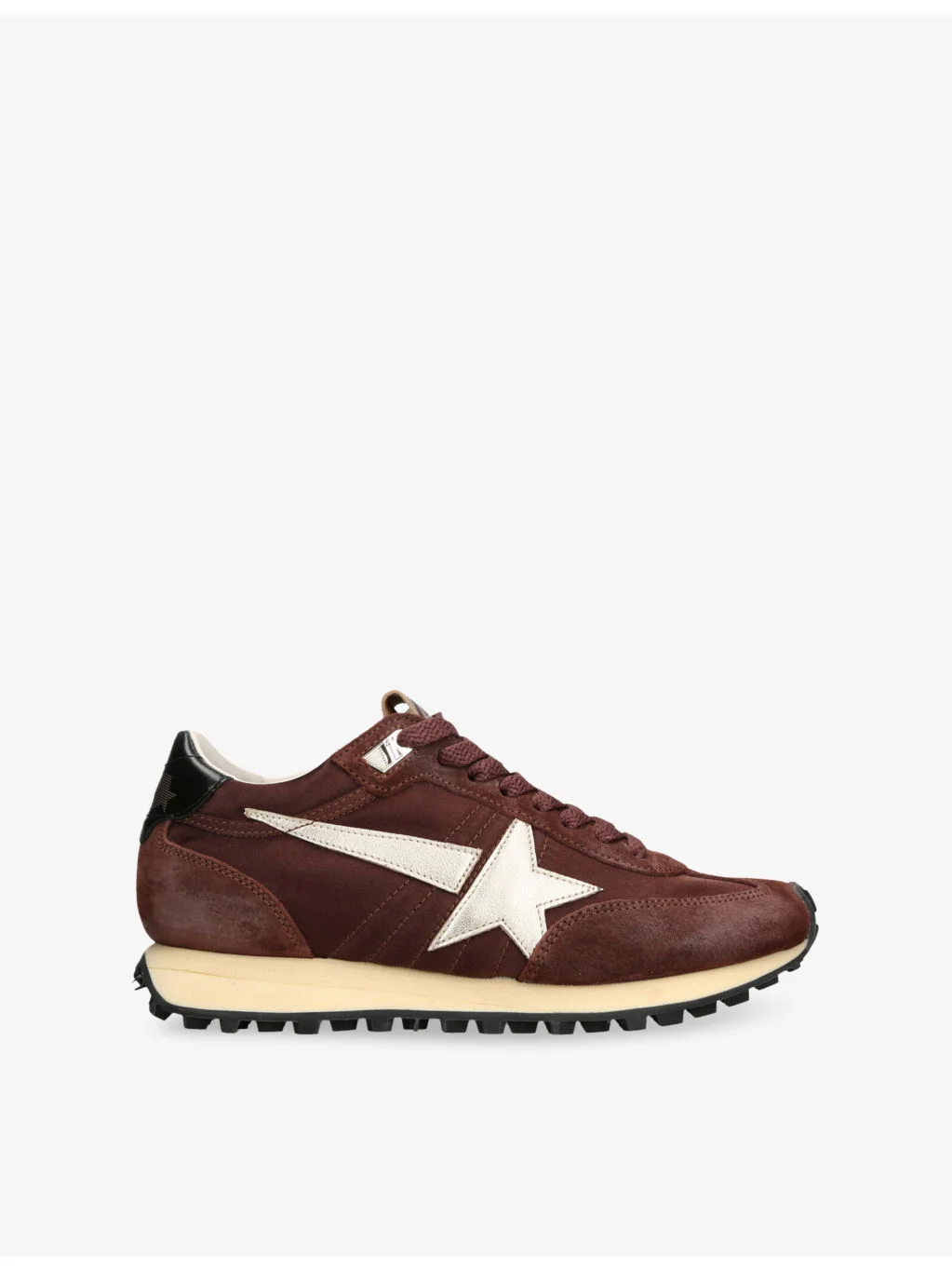 Women's Marathon with burgundy satin upper and platinum leather star