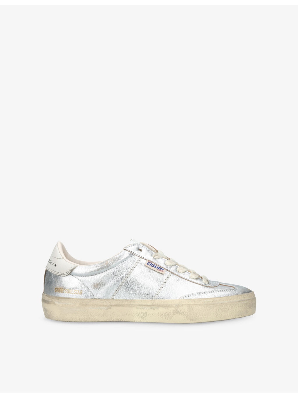 Soul Star in metallic silver leather with white leather heel tab