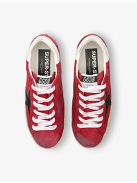 Women’s Super-Star in red suede with glitter star and white heel tab