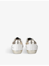 PRODUCT DETAILS - Golden Goose leather low-top trainers - 100% leather - Lace-up fastening - Low top, round closed toe, printed logo at back and sides, metallic heel and logo, star-patch at side, perforated, panelled design, distressed detail, handmade - Specialist leather clean - Made in Italy - Upper: 100% leather - Lining: 100% leather - Sole: 100% leather Ref: R04370092