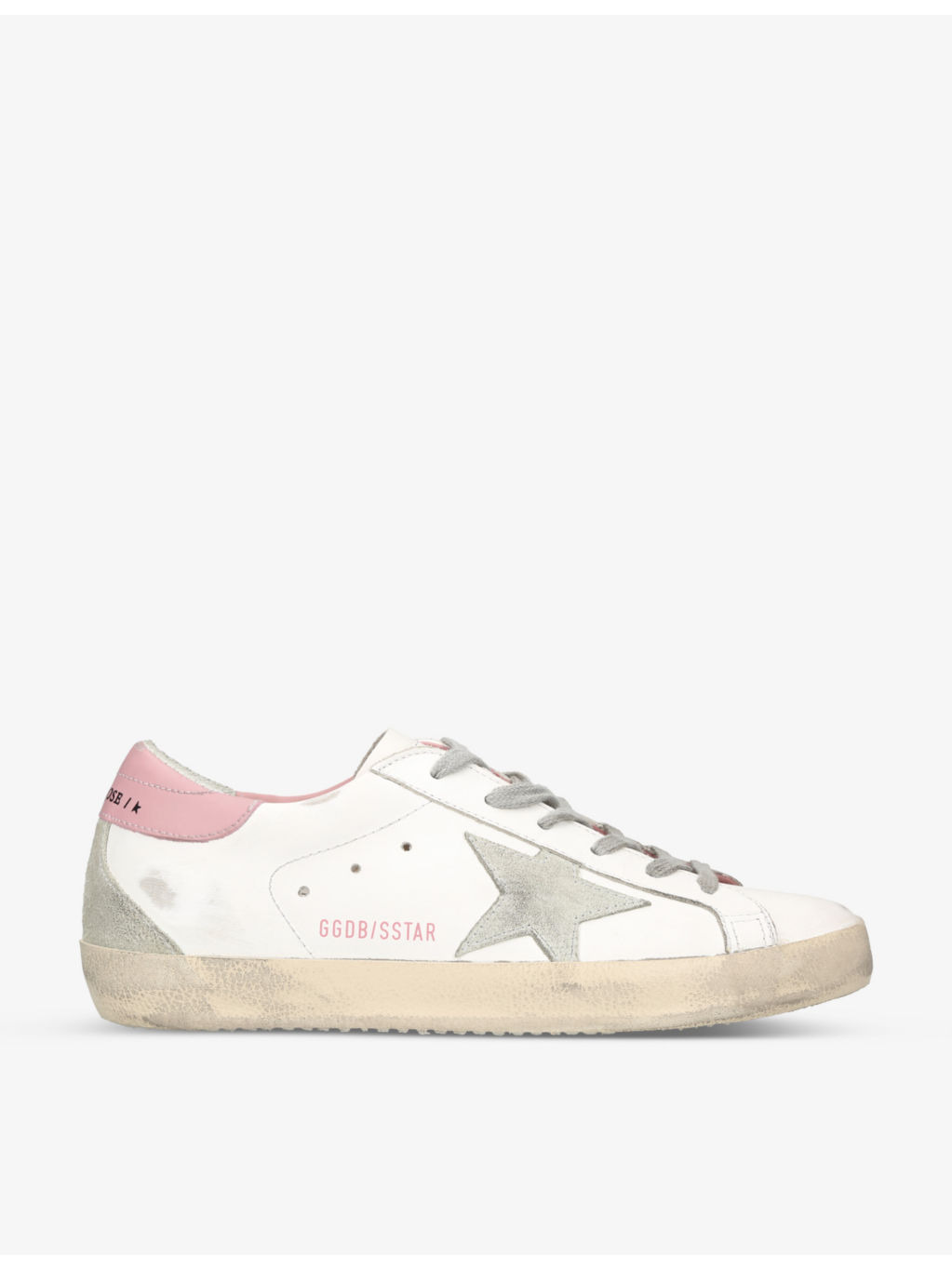 PRODUCT DETAILS - Golden Goose leather trainers - 100% leather - Lace-up fastening - Low-top, round-toe, contrast back panel, star-motif at side, printed logo at back, sides and tongue, all-over distressed edges - Specialist leather clean - Upper: 100% leather - Lining: 100% leather - Sole: 100% rubber Ref: R04089094