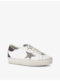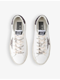 PRODUCT DETAILS - Golden Goose leather trainers - 100% leather - Lace-up fastening - Round closed toe, glitter star embellishment at the side, glitter back tab, logo-print laces, raised sole - Made in Italy - Specialist leather clean - Upper: 100% leather - Lining: 100% cotton - Sole: 100% rubber Ref: R04328275